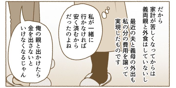 外食もこちらが費用を負担しなければいけないので、わが家に余裕がなくなってからは、一緒に食事をする機会もありませんでした。