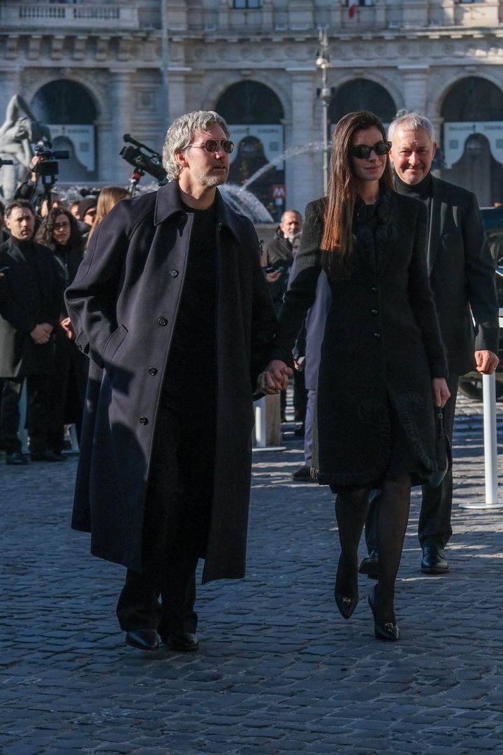 ヴァレンティノと長年親交のあったアンは、夫アダムとともに参列。