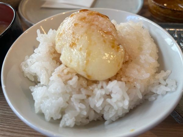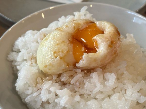 自家製のタレとの相性が抜群! 半熟玉子のとろとろな黄身とタレでごはんが進みます。