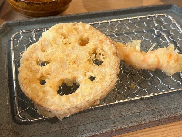 天ぷら定食では、海老・鶏・茄子・さつまいも・野菜(この日は蓮根でした)・半熟玉子の計6品。 嬉しいことにごはんもおかわり自由なので、揚げたての天ぷらとごはんを堪能。 追加でかき揚げを頼むこともできるのですが、かき揚げを頼むと天茶漬けにすることが出来るので、おなかに余裕がある方はかき揚げもおすすめです!