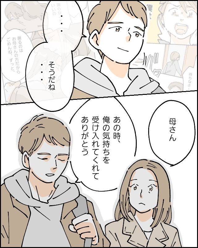 「・・・そうだね」と少し考えた後、「母さん、あの時、俺の気持ちを受け入れてくれてありがとう」とお礼を言われた私は、
