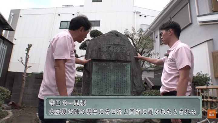 当時は下に川が流れ、すぐそばに船着き場があったというこちらは、江戸時代には「守口宿」という宿場町として栄えたそう。宿場の面影が今なお残る古い町並みを過ぎると、旅人が距離の目印とした「一里塚」の跡が。
