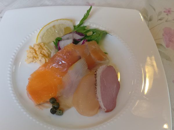 ★選べるオードブル 「スモーク3種盛り」 おすすめの自家製スモークは冷燻仕立て。そのため、柔らかさと香りの良さが特徴。鴨やホタテ、サーモン、白身魚と盛りだくさん♪ 一皿目からトリコになる美味しさです。