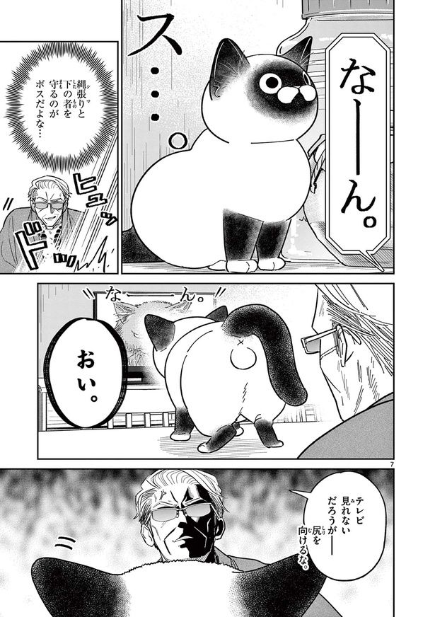 かつてやくざ同士の抗争に終止符を打った伝説の極道・松方久秀。平穏を取り戻したのち年を重ねて組長を引退するが、平穏な日々は彼には張り合いがなく、とても暇なものだった。そんな松方の心に火を付けたのは、たった1匹の虚無顔の野良猫。「にゃん吉」と命名された野良猫は自由奔放で、堅物な松方の常識を覆すばかり。果たして松方は、にゃん吉との抗争に打ち勝つことができるのか……!? 元極道のオヤジ×猫の日常を描いたドタバタふわふわコメディー『オヤジとにゃん吉』をお楽しみください。
