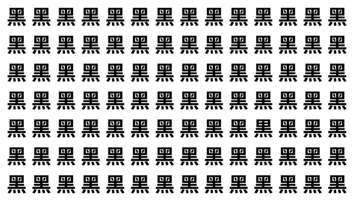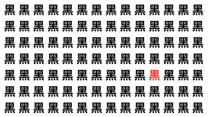 たくさんの「黑」の中に、よく似た別の漢字が1文字だけ隠れています。