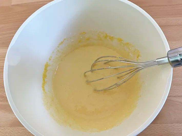 ボウルにホットケーキミックス、卵、牛乳、コーンスープの素を入れます。