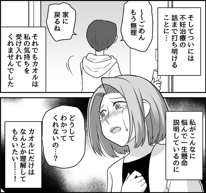 カオルの家まで行き、不妊治療というプライベートな事情まで明かして説明を尽くしたのに、カオルはちっとも受け入れてくれませんでした。私がこんなに悩んできたのに、どうして理解してくれないのでしょうか……? 私は何としてでもカオルに、この結婚を心から祝福してもらいたいと思っています。