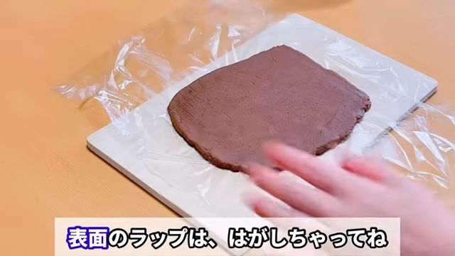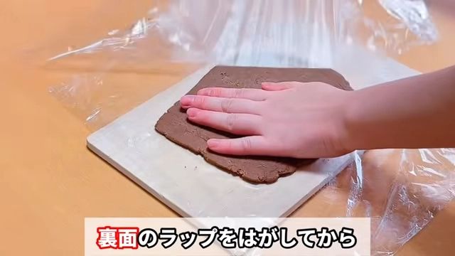 裏面のラップを一度はがしておけば、型抜きしたときに生地が下のラップにくっつかないので、型抜きしやすくなるそう!このひと手間が大事です♪