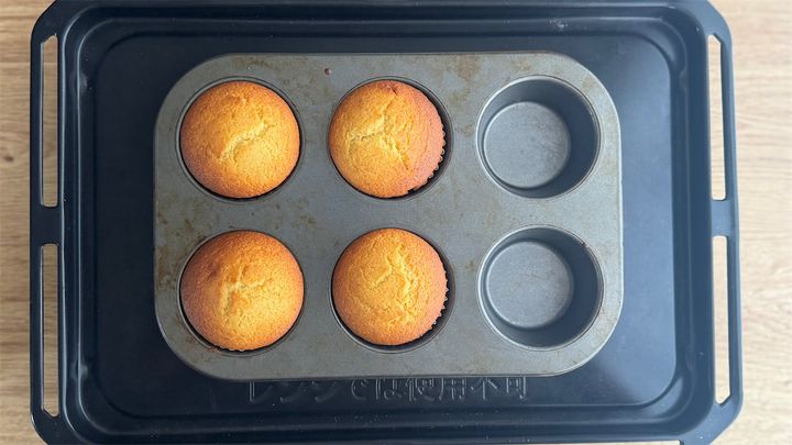 かさは減りますが、5個に分けて焼くことも可能です。その際は焼き時間は18分くらいで様子を見てください。