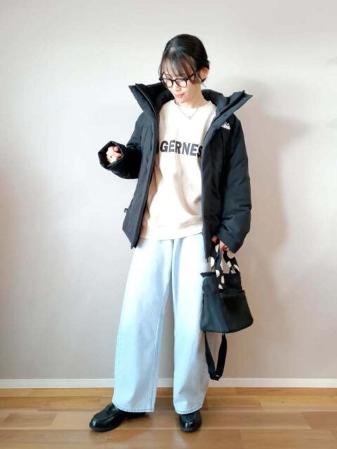 【ママ友の家に遊びに行くときの服装1】ダメージがないワイドデニムパンツ