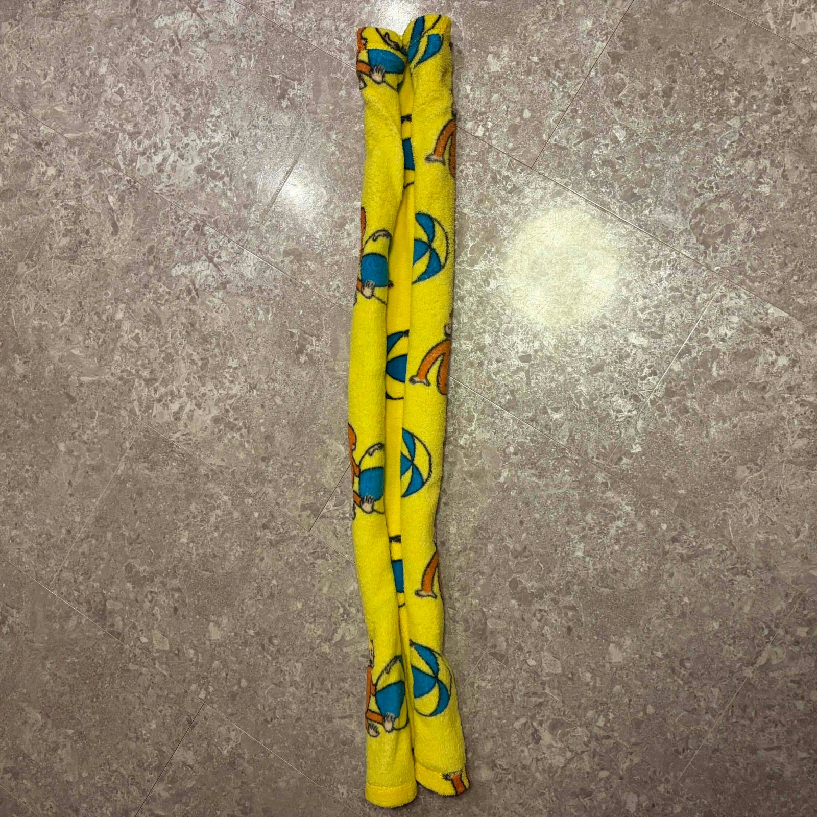 巻いた状態が崩れないよう、ヘアゴムで固定します。