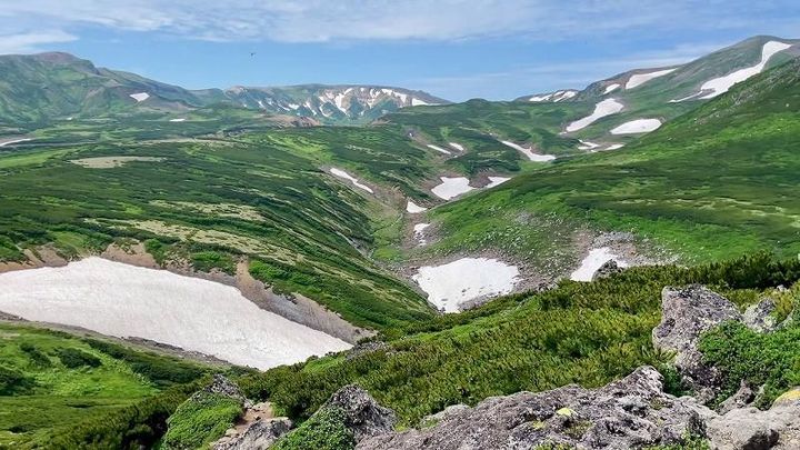 7月中旬のこの日、山の上にはまだ雪が残っていました。