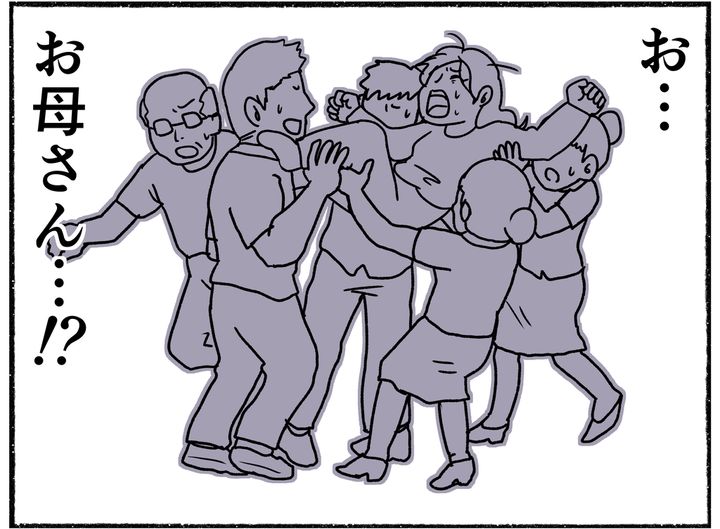 【漫画】神輿のように担がれ、わめき叫ぶ母…見知らぬ人に同情される【母とうつと私。 Vol.40】