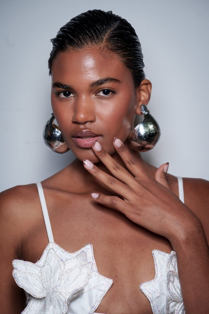 ミルキーなホワイトトーンとフロスト仕上げは、このシーズンのフレッシュなネイルの象徴。雪のように真っ白で、カシミアレイヤーを思わせる指先ほど、冬への移行を感じさせるものはないはず。