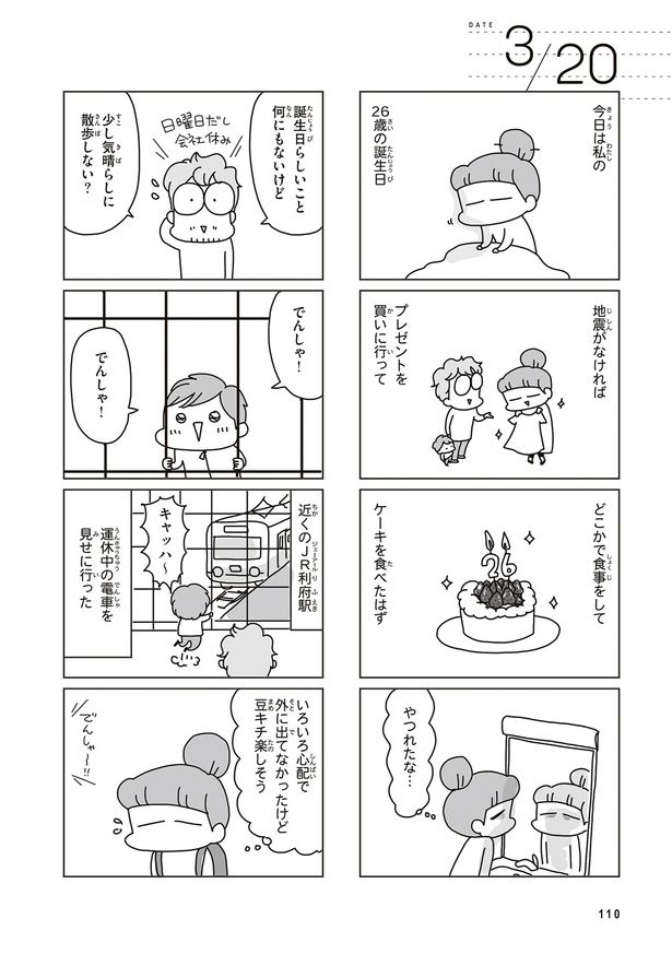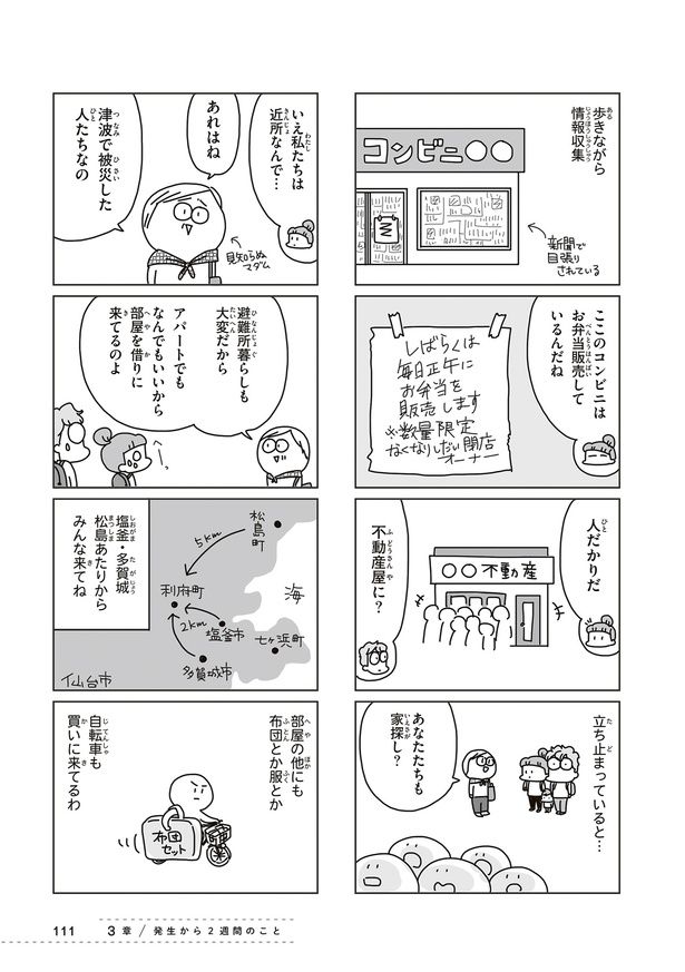 本書は、現在は防災士としても活動する漫画家&イラストレーターである著者が、東日本大震災を経験した当時(2011年3月11日〜4月)の詳細なメモを元にまとめています。