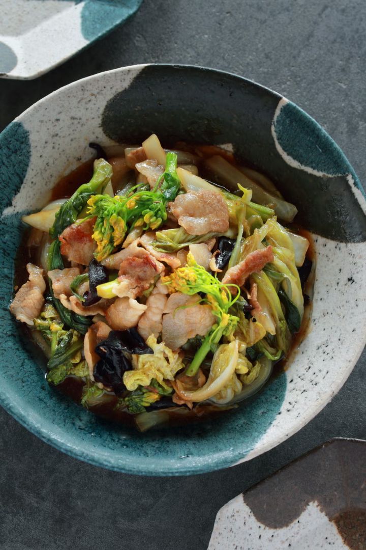 とろとろに炒めた白菜と、こんがり焼いてうま味とコクを引き出した豚バラ肉を甘酢風味に味付け。甘さと酸味のバランスがちょうどよく、ご飯が食べたくなるはず。仕上げに片栗粉でとろみをつけることで、寒い日にぴったりな身体あたたまる一品に。