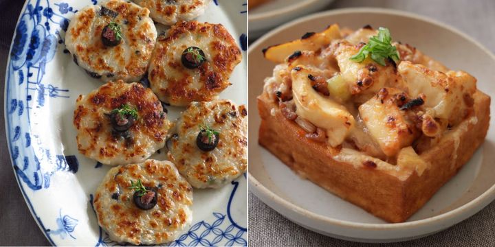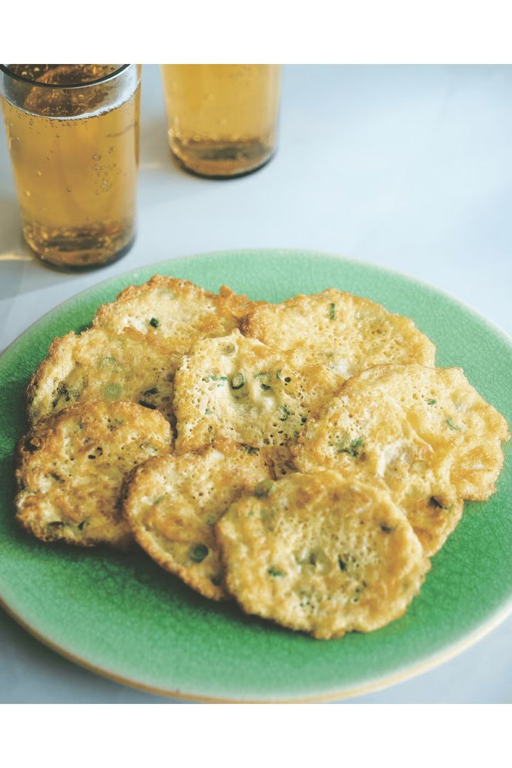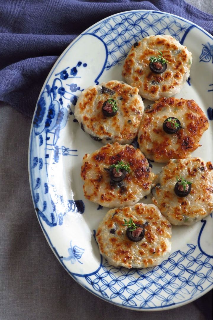 アンチョビと黒オリーブを加えた大根餅は、もっちりとした食感と濃厚なうま味で一口ごとにお酒が進む。大根はすりおろさず、千切りにするだけでOK。表面はこんがりと焼いて、もちもちとした食感とのコントラストを引き出そう。