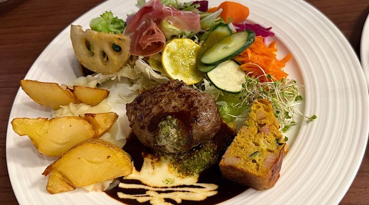 ハンバーグプレート 2300円 野菜たっぷりが嬉しい♪少量でも満足感のあるハンバーグ