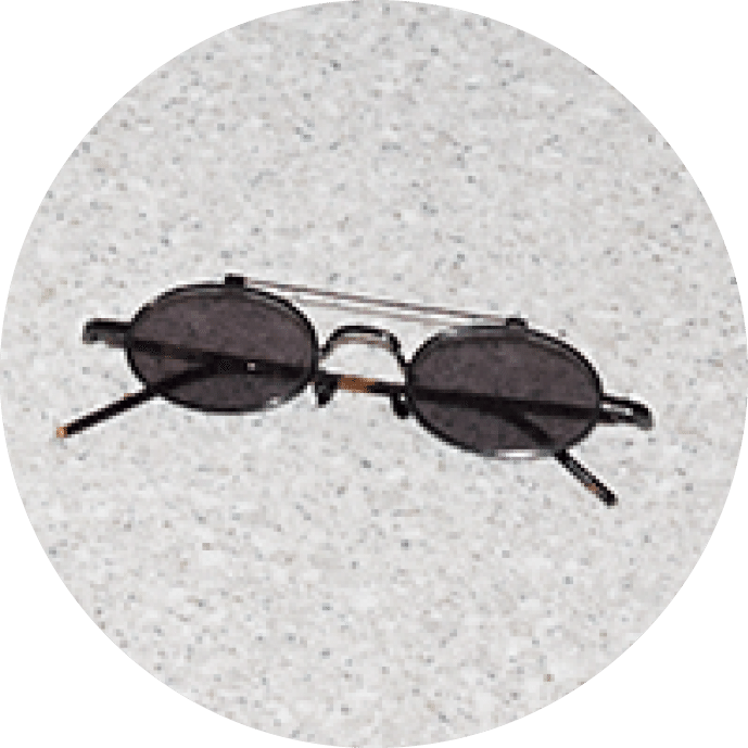 「顔の印象が引き締まるダブルブリッジ。細身のオーバルレンズ、好きなんです」。プロジェクト プロダクトのサングラス/本人私物