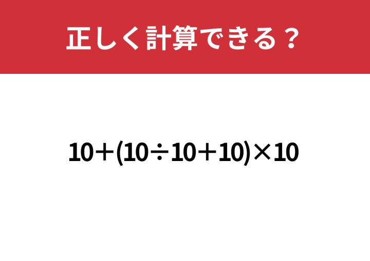 「10+(10÷10+10)×10」正しく計算できる?