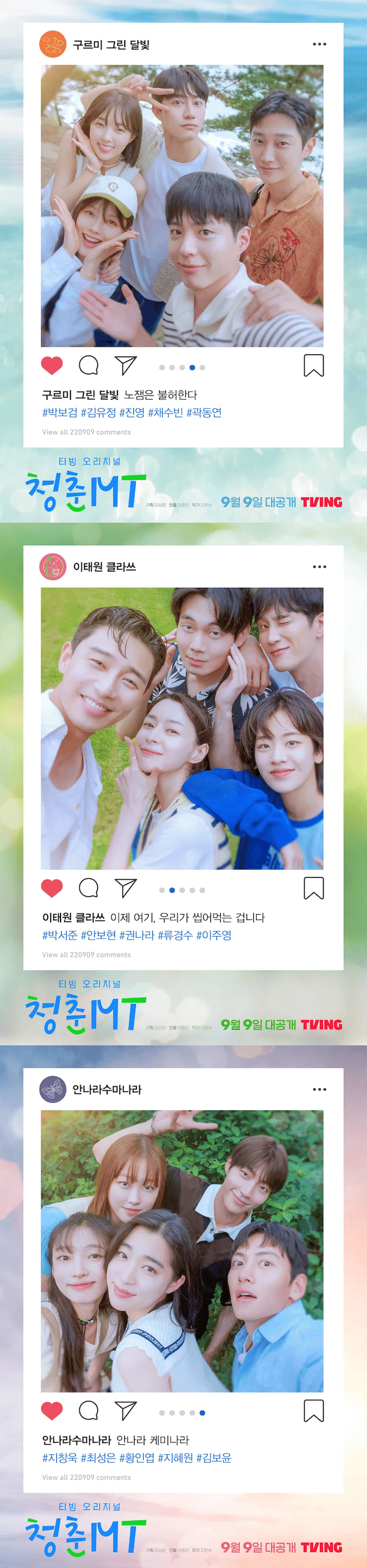『雲が描いた月明かり』『梨泰院クラス』『アンナラスマナラ -魔法の旋律-』の3作品に出演したキャストたちが、2泊3日の合宿を共に過ごすバラエティ。この3作を手がけたキム・ソンユン監督の企画で、それぞれのドラマからメインキャストが5人ずつ、計15人が集結。