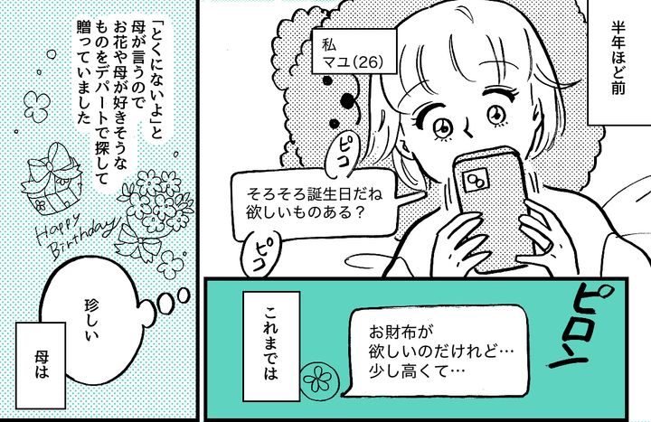 もうすぐ母の誕生日。プレゼントはいつも私が選んで贈っていました。それが今年は珍しく「欲しいお財布がある」というのです。