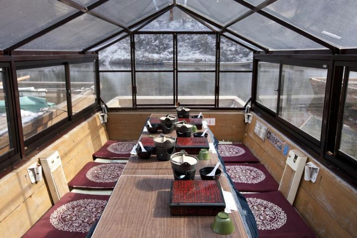春と秋は茶席舟、冬はこたつ舟が運行。舟下りと鍋がセットになった、冬季限定・舟上鍋コース(5000円)が人気。営業時間/9時30分~15時(季節により異なる) 料金/1800円(要予約) 詳細はHPで確認を。