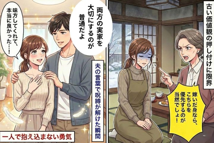 3. 義母「嫁いだ身なら、こっちを優先するのが当たり前でしょ」実家より義実家を優先するよう迫られて…戸惑う私に、夫が言い返したある一言