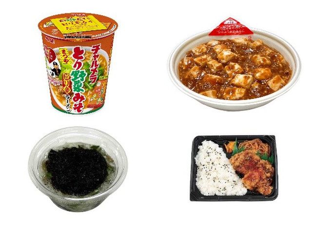 3. 今週新発売のピリ辛まとめ!『チャルメラカップ とり野菜みそピリ辛ラーメン』、『町中華の旨辛麻婆丼』など♪
