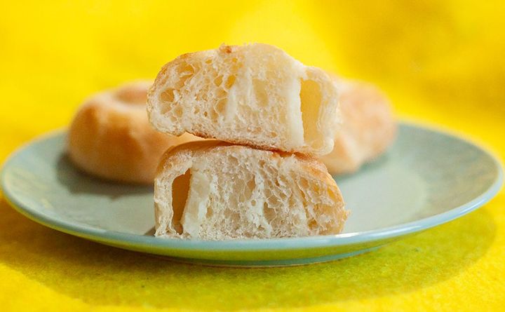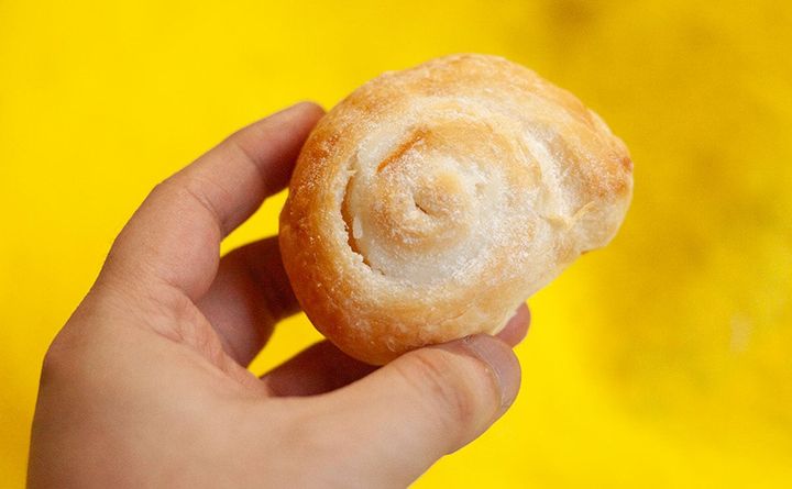 さっそく食べてみると、ふわふわ&もちもちという感じではない? 一か所に集中しているわけではなく、生地と一緒に巻き込まれているのでしょうか。ミルククリームのおかげでしっとり感がすごくて、食感はブリオッシュに似ていますね。しっとりしすぎて、少し噛んだだけでとろけちゃう!?