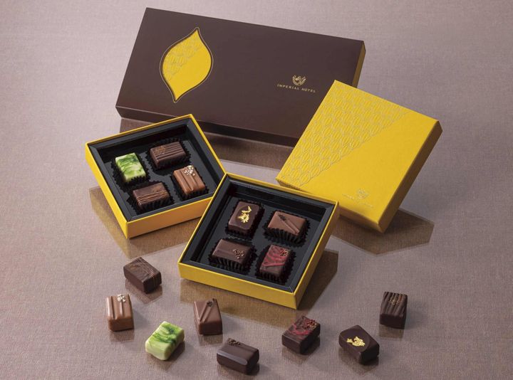 ホテル内のショコラトリーでシェフ ショコラティエ 市川幸雄氏が素材の選定から配合、配置、サイズまで一つひとつ緻密に計算し、手作業でショコラを作っている帝国ホテル 東京。2026年の新作ショコラは、カカオから抽出したカカオエキスパウダーを使用したボンボンショコラが登場しました。4個入は、ホワイトチョコレートガナッシュにアールグレイ風味のガナッシュを合わせた「テ ノワール」や、フランボワ―ズ風味のガナッシュを合わせた「フランボワーズ」など、スタンダードな味わいのショコラ4種の詰め合わせ。8個入は、あられや青のりなど和の食材を使った斬新なショコラが加わった、遊び心ある味わいです。一粒で口の中に広がる味わいの変化や余韻を楽しめる、ショコラティエ渾身の逸品を堪能して。