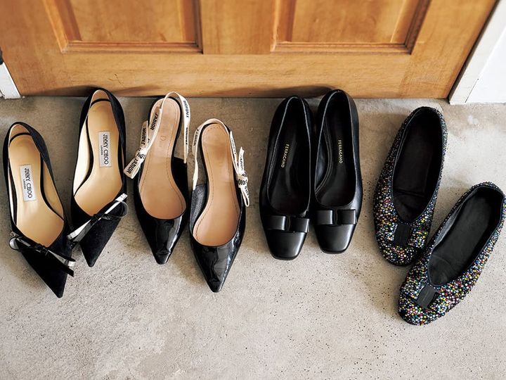 自宅のシューズボックスには、FERRAGAMOのヴァラをはじめ、ガーリーな名品パンプスがずらり。昔から木馬(老舗リボン店)に通いコレクションしていたほどのリボン好き。品の良さと可愛らしさ、どちらも叶えてくれます。