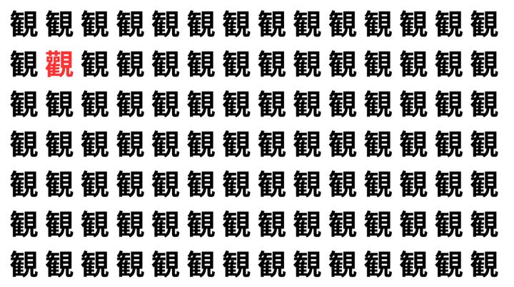 たくさんの「観」の中に、よく似た別の漢字が1文字だけ隠れています。
