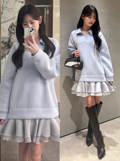 裾にオーガンジーをドッキングした、カットソー素材のミニワンピ。スキッパーデザインで顔まわりに抜け感をプラス。ややオーバーなサイズ感がこなれた印象に、立体感のあるシルエットにこだわりました。