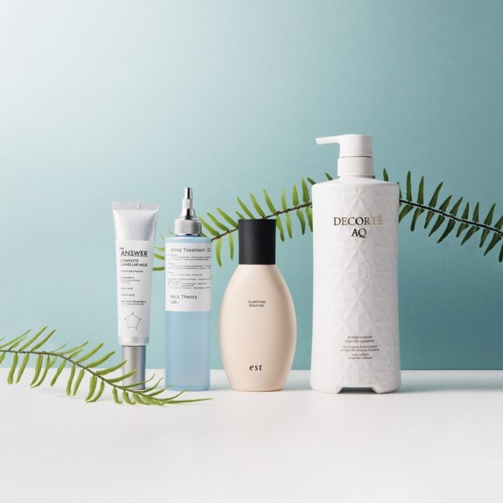頭皮ケアやトリートメントにも新しい考え方の製品が。「年齢を重ねて頭皮に汗をかくようになった人にすすめたいのが、角栓もオフするエストの頭皮ケア。頭皮マッサージすれば、目の疲れまですっきり」(倉田さん)