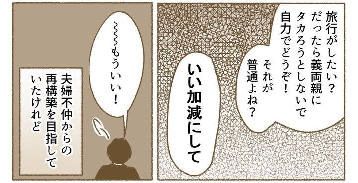 夫の無職期間のせいで、わが家は今も家計が苦しいまま。旅行資金だって本来自分たちで用意すべきなのに、それができない理由は夫のこれまでの行動なのです。
