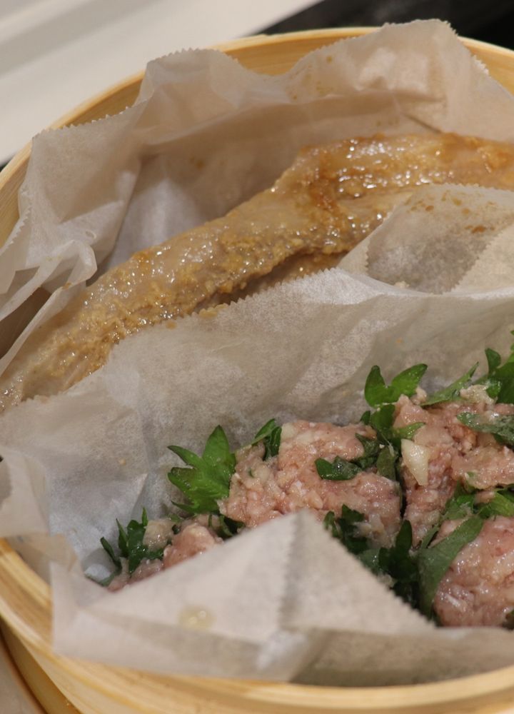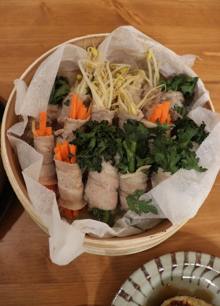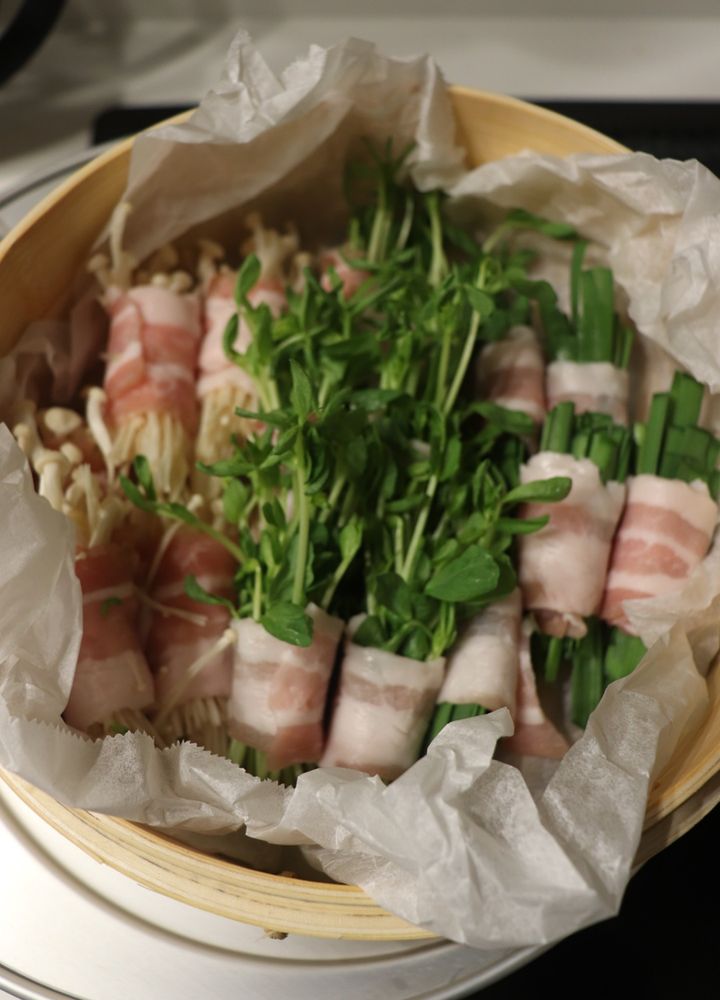 定番の鍋を蒸篭で! 「豚バラと白菜のミルフィーユ蒸し」