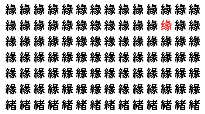 たくさんの「緣」の中に、よく似た別の漢字が1文字だけ隠れています。