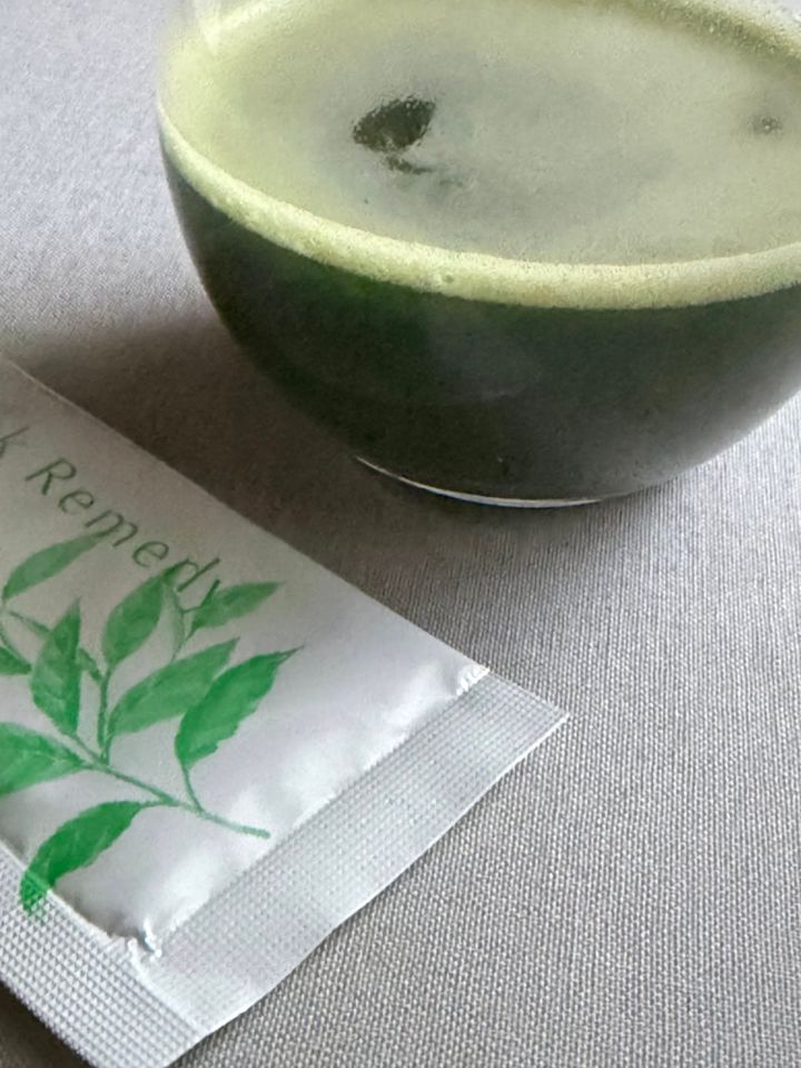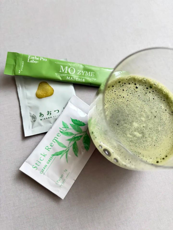 まずは、同業の美容ライター仲間にすすめられて飲み始めたアイテムから。オーガニック原料にこだわる「スティックレメディ」のグリーンブレンドです。有機抹茶やモリンガをはじめ、クロレラ、スピルリナなど9種のグリーン素材をベースに、乳酸菌とフラクトオリゴ糖をプラス。葉緑素や食物繊維、ビタミンB群、鉄・亜鉛などのミネラルまでバランスよく含まれた、正にハイブリッド青汁。そして何より、驚くほど美味しいんです! 血糖値に影響しにくい羅漢果のほのかな甘みで、水に溶かすだけでお抹茶感覚で楽しめます。原材料まで妥協したくない人にこそ試していただきたい、安心感のある商品です。