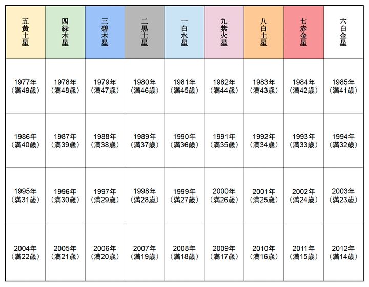 *その年の節分までに生まれた人は、前年の九星・干支になります。