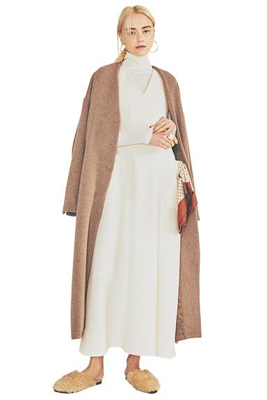 3. 使えるコートは「えりがない」着込んでも太く見えない「重ね着が上手くなる」デザイン