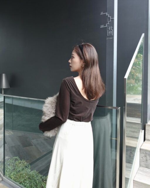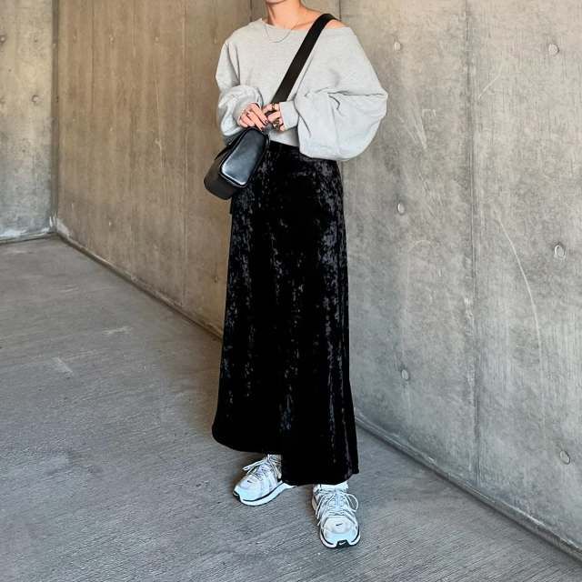 ツヤ感・なめらかな肌触り・生地の落ち感・女性らしい雰囲気のベロア。そんなベロアを使った定番服は「スカート・ワンピース」です。女性らしさと高級なムードを兼ね備えているベロアのスカート・ワンピースは着るだけでよそ行きのコーデに。生地に落ち感があるため、着痩せ見えの効果も期待できます。