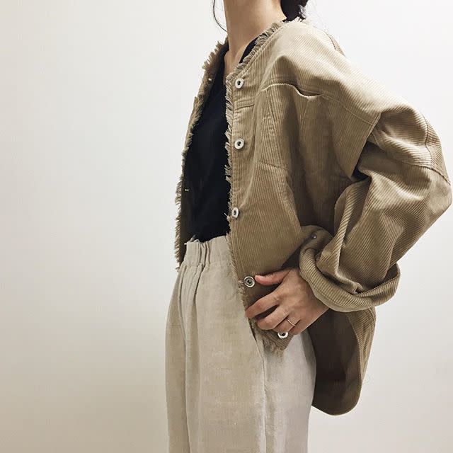 凹凸(おうとつ)のある縦畝(たてうね)・厚手生地・カジュアルな雰囲気のコーデュロイ。そんなコーデュロイの定番服は「パンツ・ジャケット・シャツ」です。厚手の生地に加えてハリ感があるので、シルエットにボリュームがあるのが持ち味です。