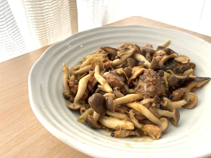 コク深~い味わい♪「きのこのサバ缶みそ炒め」