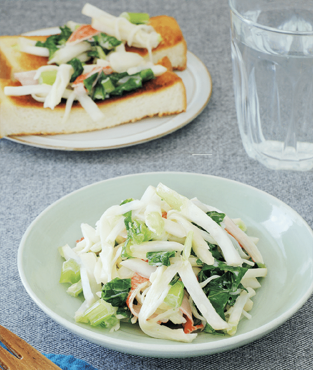 パンにのせてもおつまみにも! 「かぶとかにかまのからしマヨ和え」