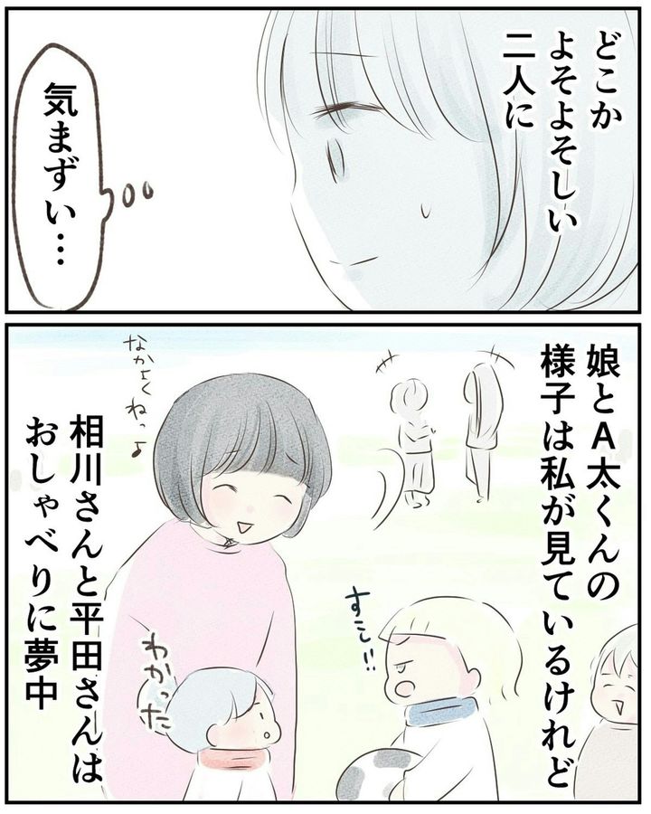 子ども同士だって、相性がありますよね。狭い交友関係だらこそ、わざわざ合わない人と付き合いたいとは思いません。自分とわが子のために、ほどよい距離感で付き合うことは大切ですね。