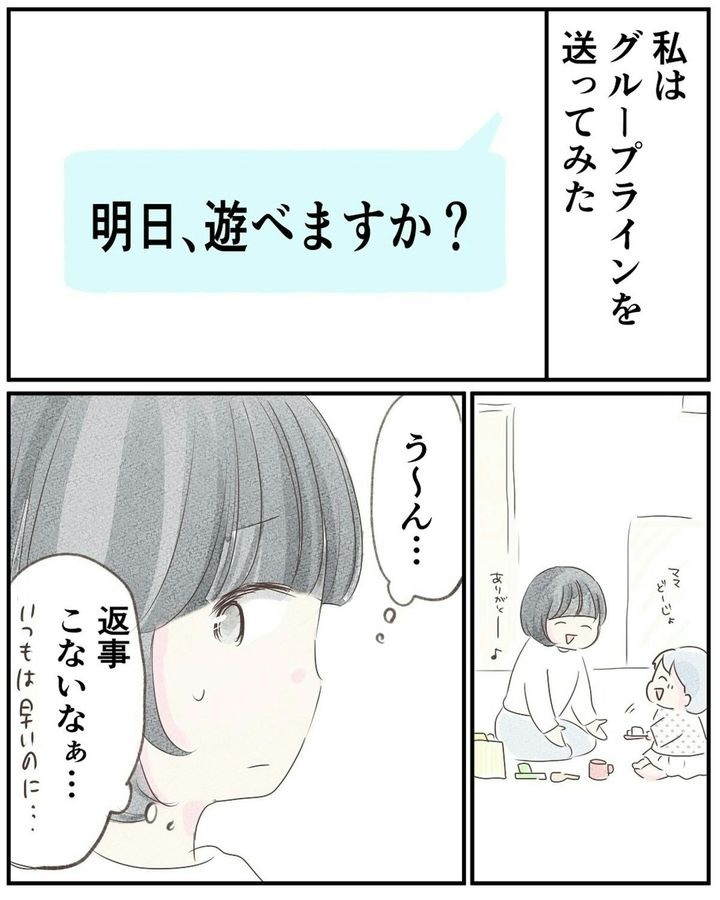 子どものためにグループLINEを作成し、遊びに誘いますが、断られてしまいました。たしかに、用事があるなら、仕方ないですね。