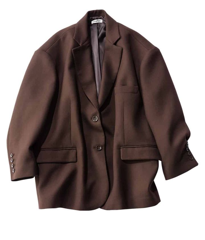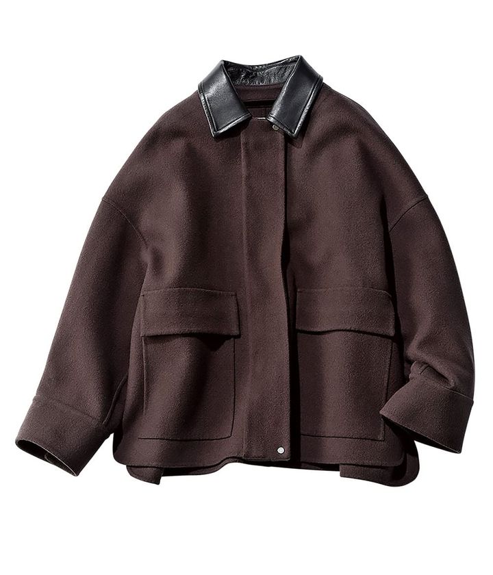 茶はボトムスよりアウターで効かせるのが気分。特に濃い茶を選ぶと黒にない柔らかで優雅な表情になります。