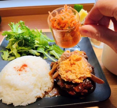 先ほどのハンバーグランチプレートがコラボメニューでした。お二方のアイデアを散りばめた内容になっています。