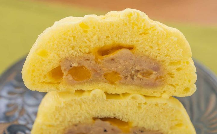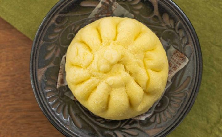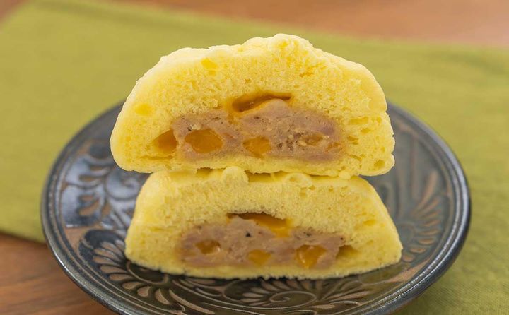 形は肉まんですが、生地の色はカレーまんのような少し黄色っぽい色合いになっていますね。チーズをイメージした色でしょうか。